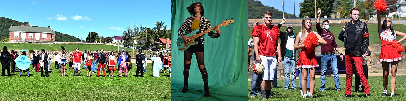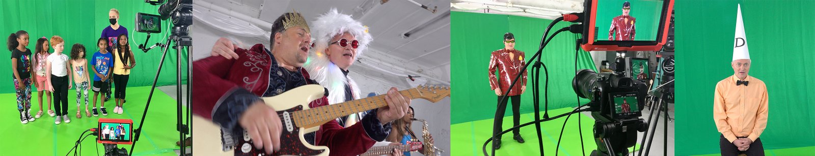 satire to mock the tendency in mass media to dumb down the culture. The shoot included 30 people, adult and child actors, musicians, and tech crew. The shoot required lots of crazy costumes and props.